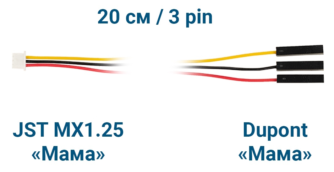 - Модель: Шлейф JST MX1.25 «Мама» – Dupont «Мама» (3 pin, 20 см)