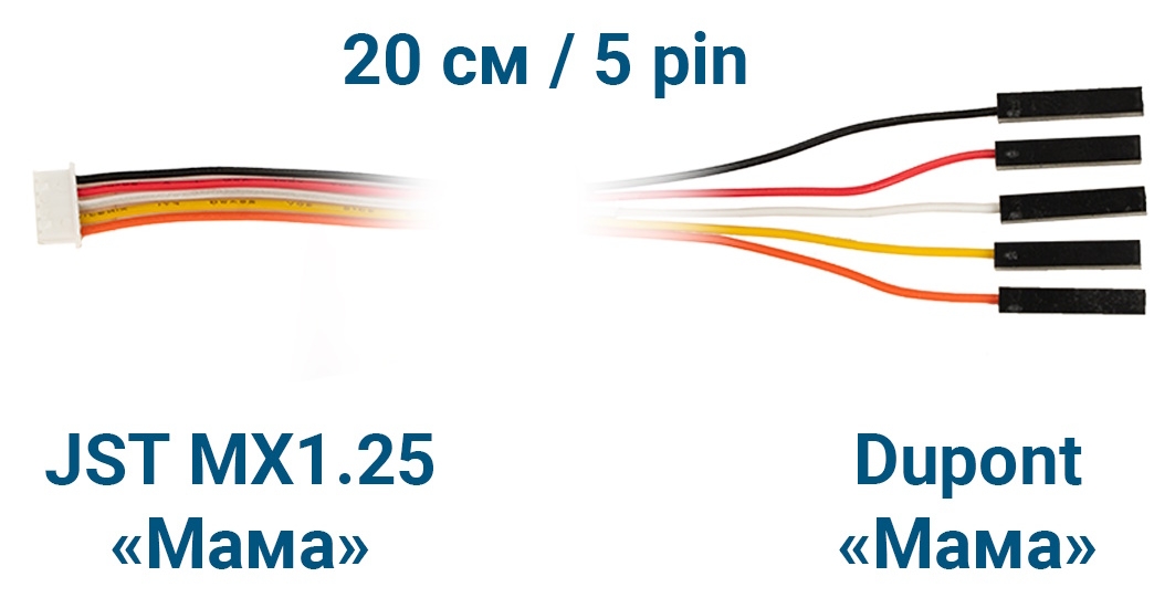 Соединительный шлейф JST MX1.25 «Мама» – Dupont «Мама» состоит из пяти проводов длиной 20 см.