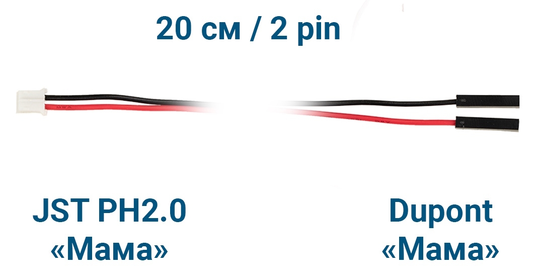 - Модель: Шлейф JST PH2.0 «Мама» – Dupont «Мама» (2 pin, 20 см)