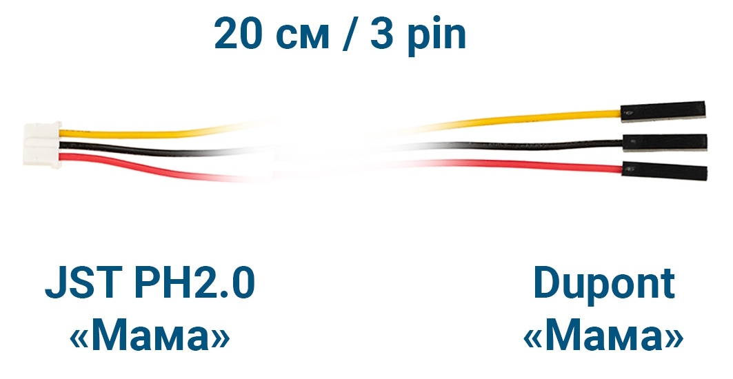 - Модель: Шлейф JST PH2.0 «Мама» – Dupont «Мама» (3 pin, 20 см)