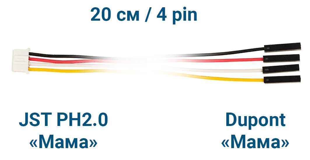 - Модель: Шлейф JST PH2.0 «Мама» – Dupont «Мама» (4 pin, 20 см)