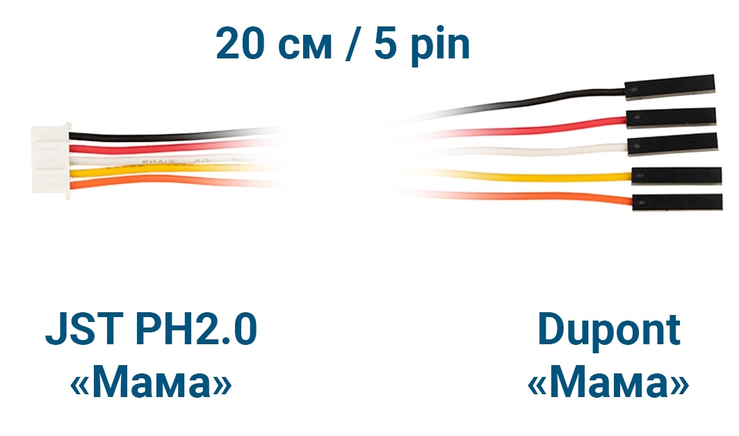 - 1× Шлейф JST PH2.0 «Мама» – Dupont «Мама» (5 pin, 20 см)