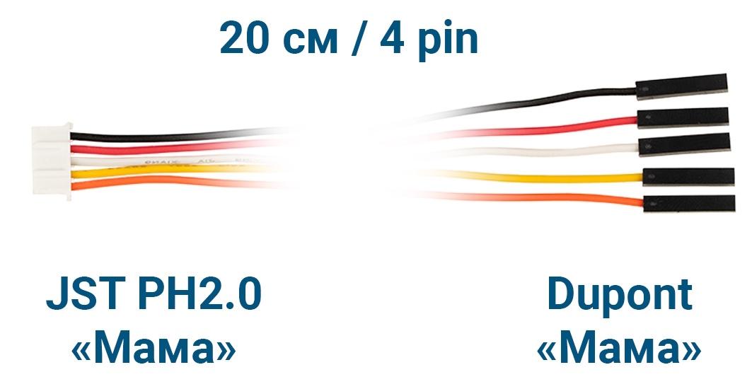 - Шлейф JST PH2.0 «Мама» – Dupont «Мама» (4 pin, 20 см)