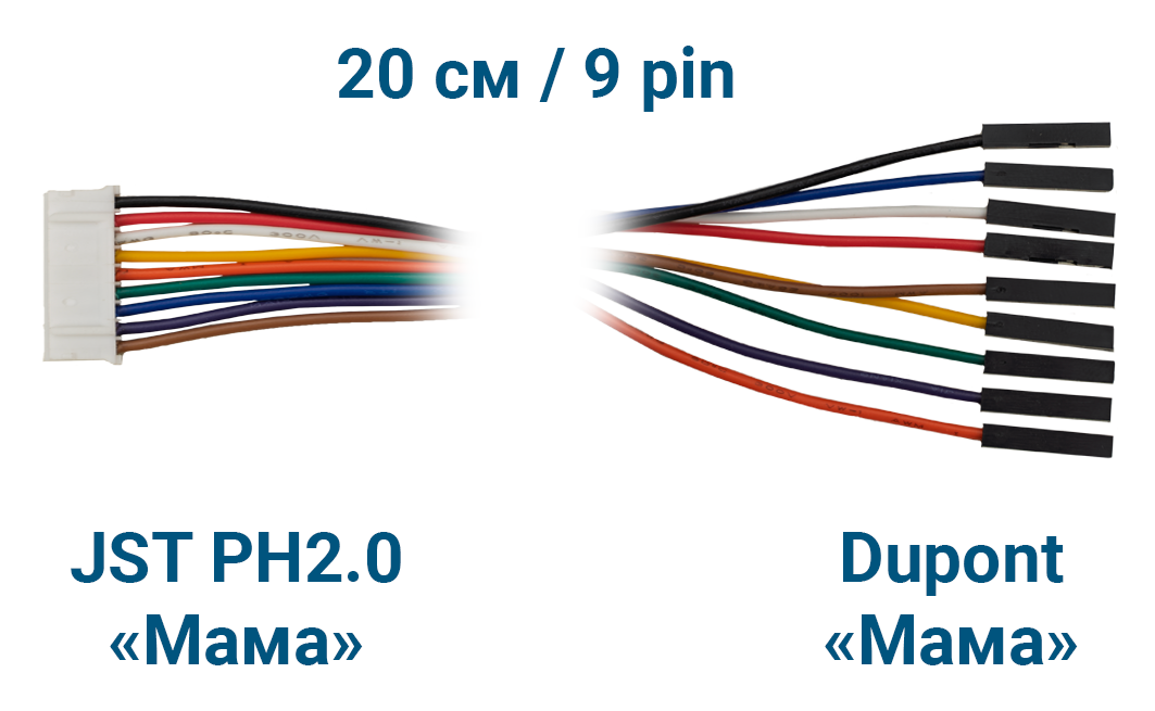 - 1× Шлейф JST PH2.0 «Мама» – Dupont «Мама» (9 pin, 20 см)