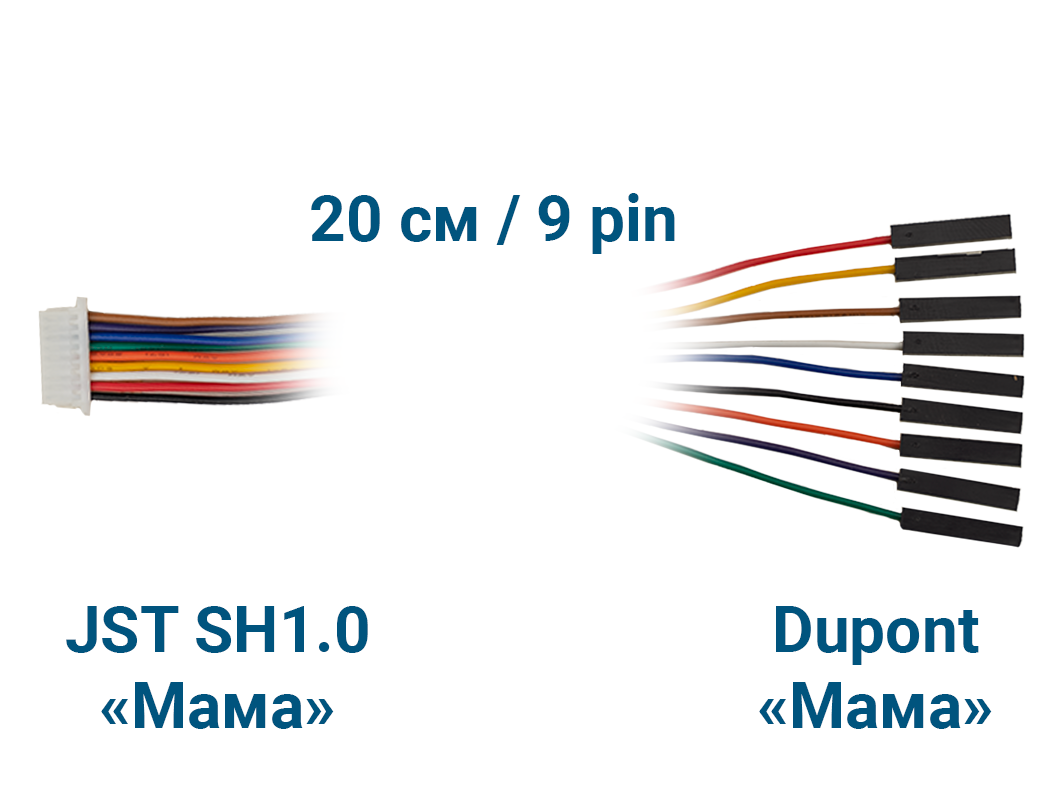 - 1× Шлейф JST SH1.0 «Мама» – Dupont «Мама» (9 pin, 20 см)