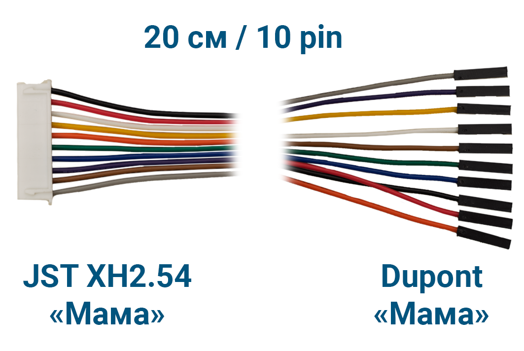 - Модель: Шлейф JST XH2.54 «Мама» – Dupont «Мама» (10 pin, 20 см)