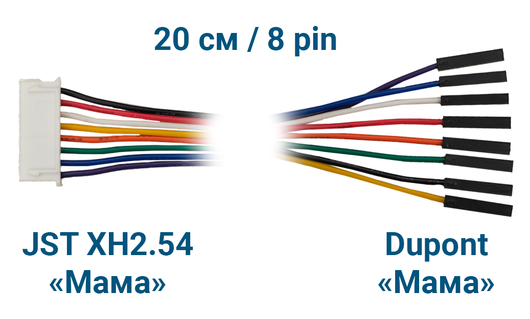 - Модель: Шлейф JST XH2.54 «Мама» – Dupont «Мама» (8 pin, 20 см)