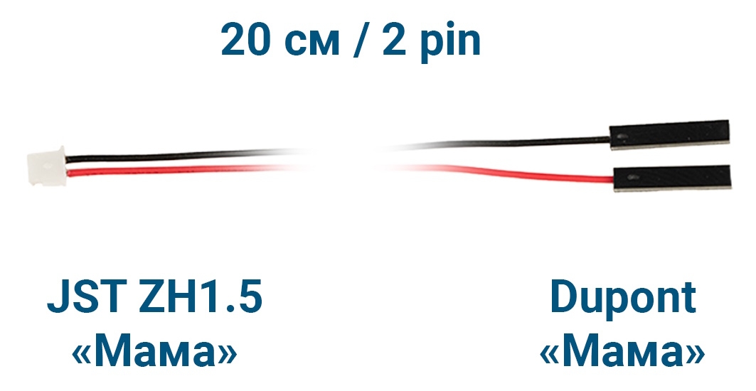 - Модель: Шлейф JST ZH1.5 «Мама» – Dupont «Мама» (2 pin, 20 см)
