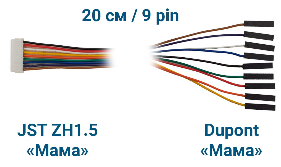 - Модель: Шлейф JST ZH1.5 «Мама» – Dupont «Мама» (9 pin, 20 см)