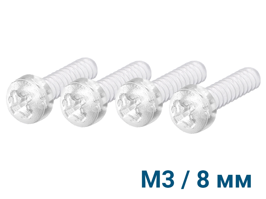 Винт акриловый М3×8 (4 шт.): Комплект из четырёх акриловых винтов с резьбой М3 и длиной ножки 8 мм Подробнее