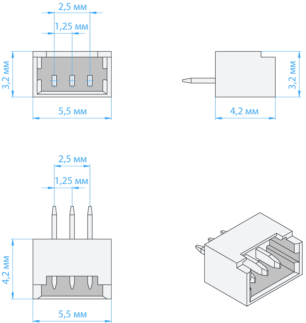 - Модель: Разъём JST MX1.25 «Папа» (3 pin)