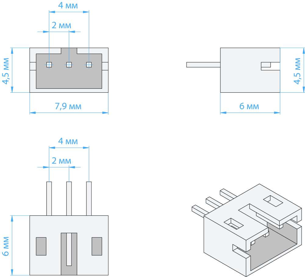 - Разъём JST PH2.0 «Папа» (6 pin / 4 шт.)