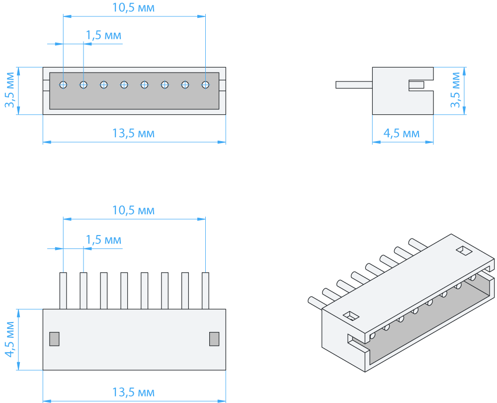 - Модель: Разъём JST ZH1.5 «Папа» (8 pin)