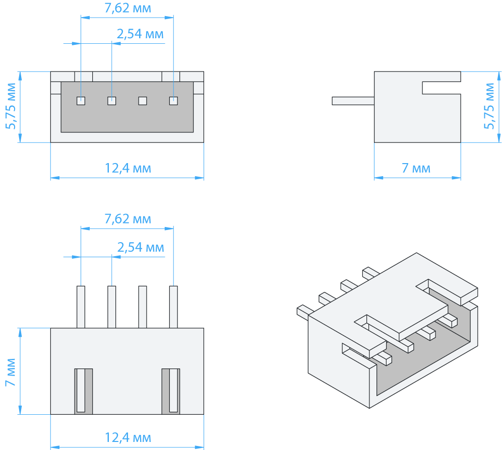 - Разъём JST XH2.54 «Папа» (7 pin / 4 шт.)