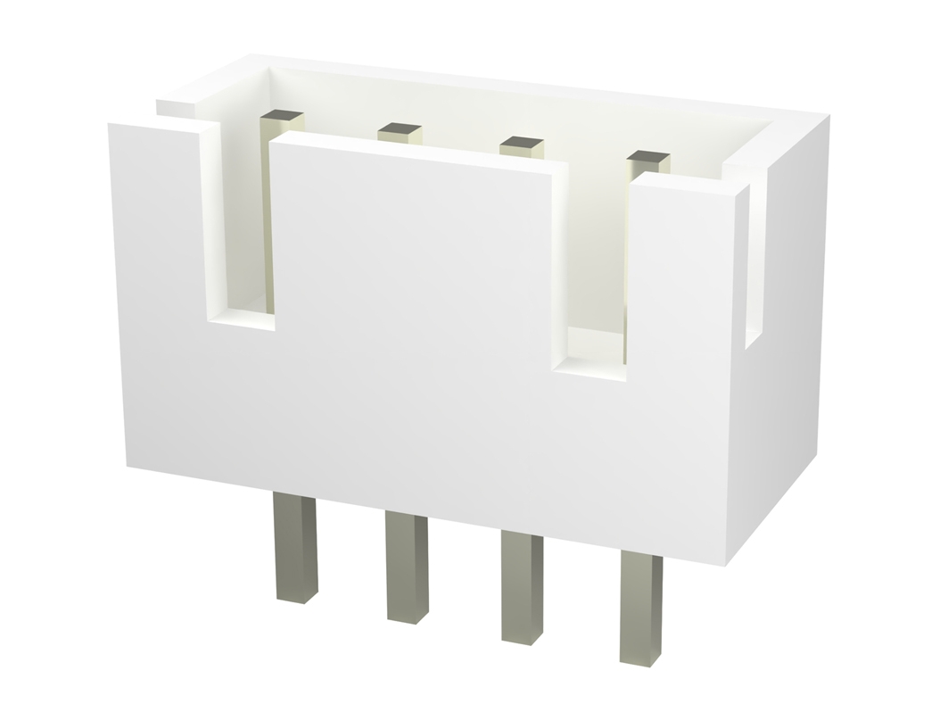 Разъём JST XH2.54 «Папа» (4 pin) состоит из пластикового корпуса с четырьмя металлическими штырями внутри. Шаг контактов в семействе XH равен 2,54 мм.