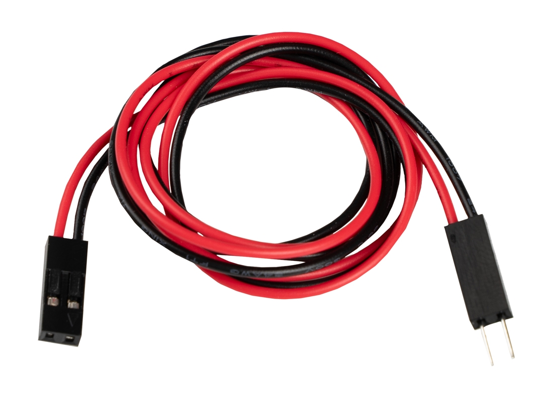 Используйте шлейф из двух проводов длиной 50 см с коннекторами Dupont «Папа – Мама» для соединения различных датчиков и модулей c интерфейсными платами Trema Shield, Trema Power Shield, Trema Shield Nano и т.д.