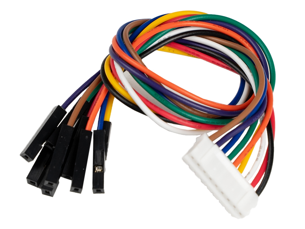- С одной стороны все провода шлейфа обжаты в разъём JST семейства PH c девятью контактами под штырь, который принято называть «Мама» или «Female». Шаг контактов в семействе PH равен 2 мм.