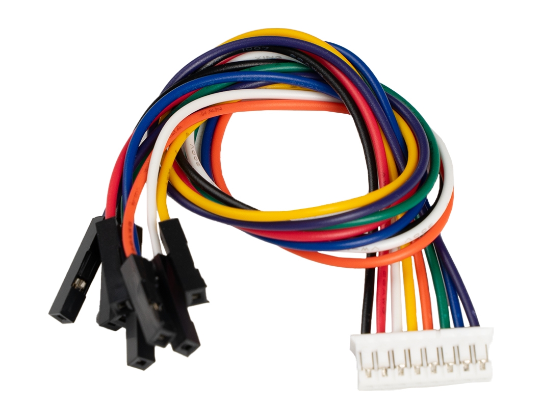 - Шлейф JST PH2.0 «Мама» – свободные провода (8 pin, 30 см) — ответная часть для конектора JST PH2.0 «Папа» со свободными проводами под пайку или клеммник.