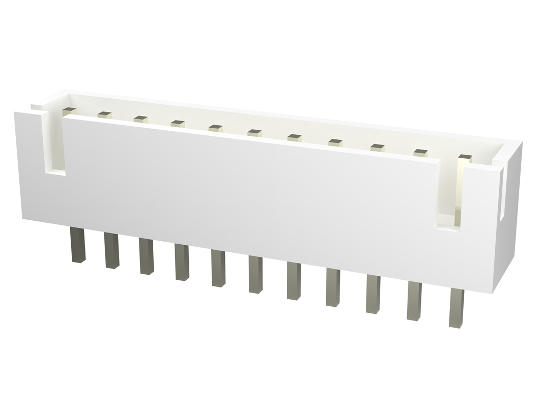 Разъём JST XH2.54 «Папа» (11 pin) состоит из пластикового корпуса с одиннадцатью металлическими штырями внутри. Шаг контактов в семействе XH равен 2,54 мм.