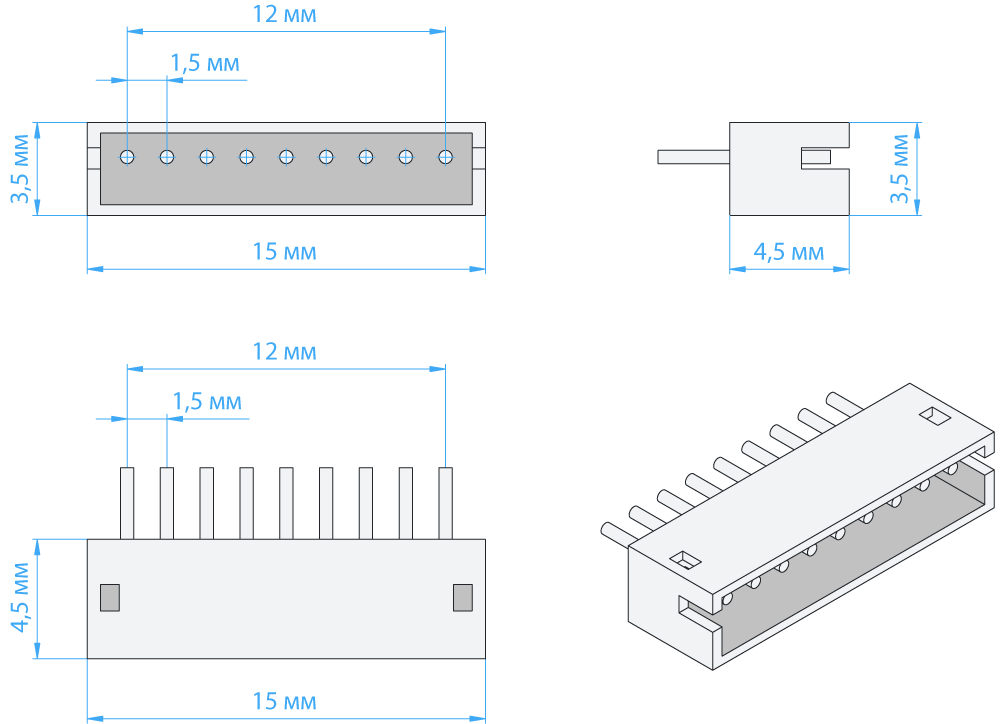 - Разъём JST ZH1.5 «Папа» (10 pin / 4 шт.)